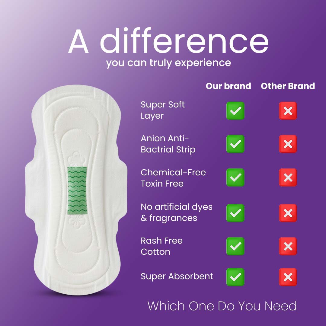 • Enhanced Absorption – Designed with premium, highly absorbent materials, these pads provide superior absorption compared to standardnapkins—ideal for heavy-flow days.
